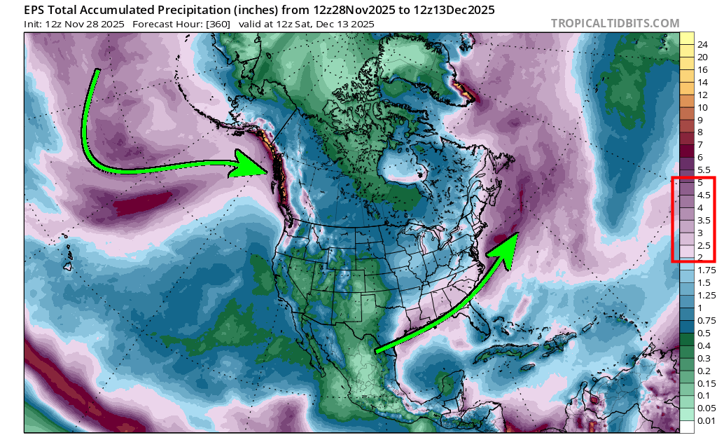I’m not sold the EPS is correct in showing the split here with a cold Russia and cold North America….but it certainly fits current and the upcoming 10 days pattern overall.