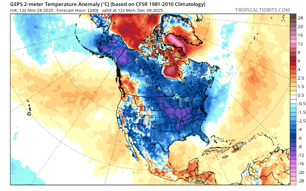 No matter how you slice it, some interesting times are coming to part of North America for a few weeks atleast. And for us in the South, colder and wetter will start to set in more so than we’ve seen all Autumn long. And for the Midwest to Northeast, already more snow is falling or soon will, compared to the entirety of Last Winter it seems. So that alone is telling. Action-Action-Action. Again though, I do believe we’ll see a nice warm up at some point in December. Just not sure when. By the same token, I think we repeat this exact same pattern later on.