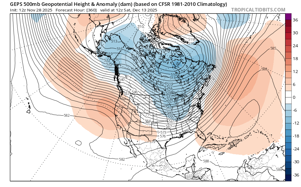 However, all this said—things are getting very active next few weeks for a bunch of reasons, and every model has some signs of western Canada or eastern Pacific Ridging, which favors downstream troughing in the eastern half of the nation. Thats a pretty cold pattern—atleast average cold, and tending to much more cold our immediate north. And with models showing a very active Pacific jet constantly bringing systems into either Southern Alaska, or western Canada and then quickly diving toward the Southwest or Rockies, these systems keep right on pressing east bound. Until now, they have usually decayed and not dropped much precip in the Southeast (especially east of the Apps). But now, they are further south, tapping the Gulf, more often and holding together better, so we have Gulf Lows showing up. In fact, there are several southern systems shown to potentially run through the Southeast through mid December. Each one will be possibly having big snow on their north sides, just like what recently happened, and what is going to happen this weekend in the MidWest and Lakes, and then what is going to happen in part of western Kentucky to Ohio Valley to Pennyslvania to the Interior Northeast this early next week. This is one very busy pattern, laying down a lot of snow all of a sudden in the eastern Plains, the MidWest, the Lakes and the Northeast. Out of nowhere, within 10 days, a vast snow pack has been laid (or is in the process as we speak). Wild Stuff.